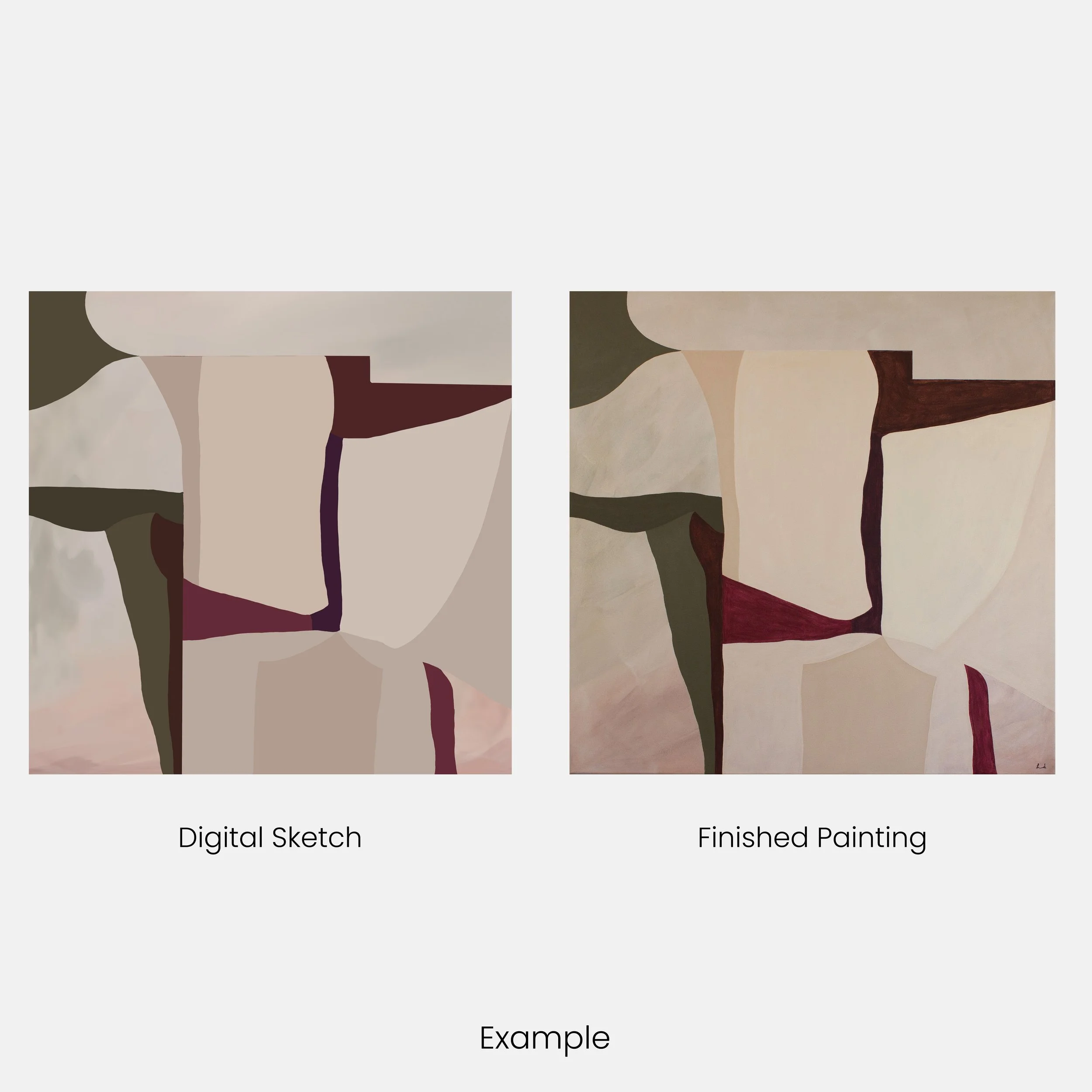 These sketches are adaptable so even if the current ratio doesn’t match your requirements (i.e. the sketch is square but you need a landscape painting), I’m happy to have a play around to see how this design would work for your space.
